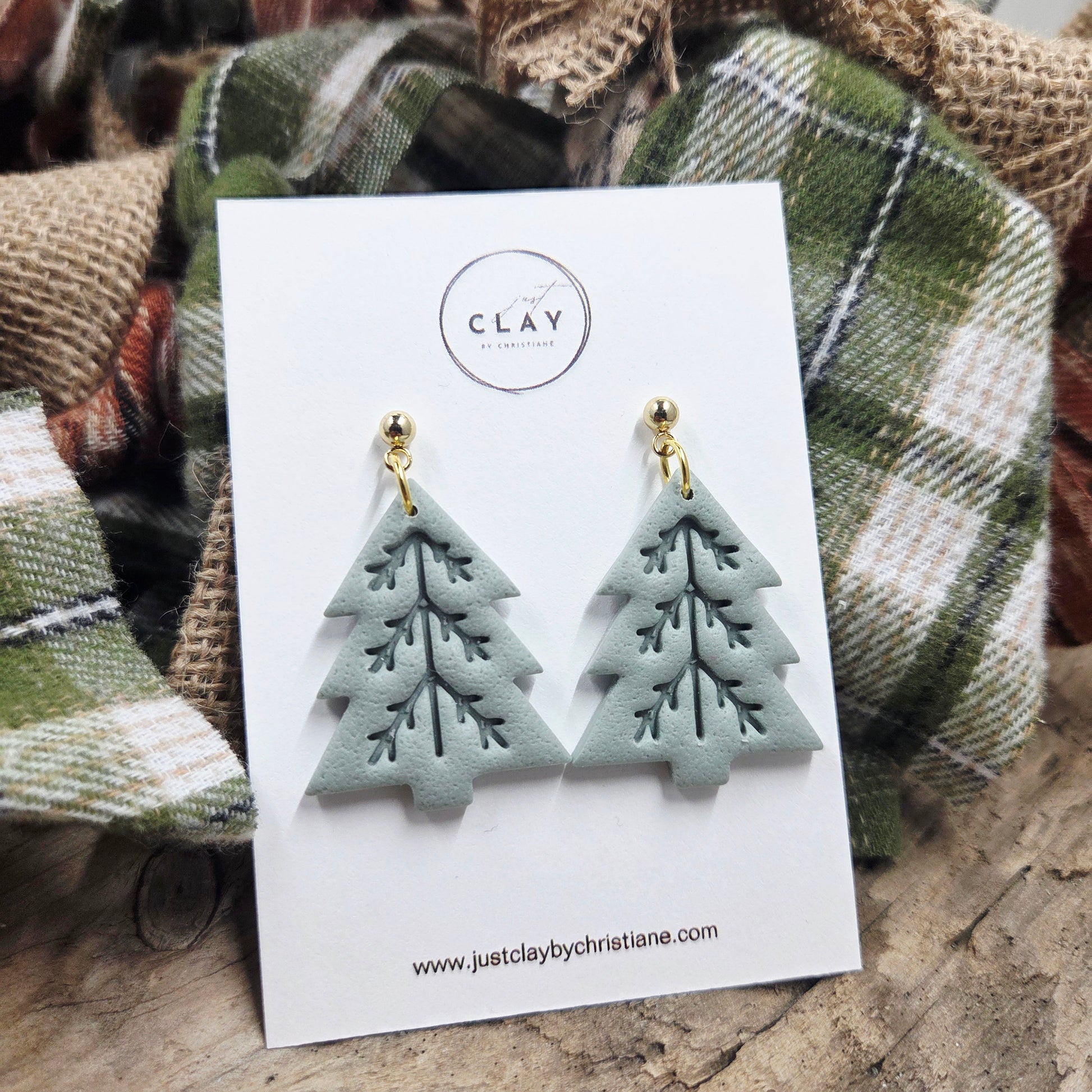 Folk Tree Dangles | sage |handmade | polymer clay