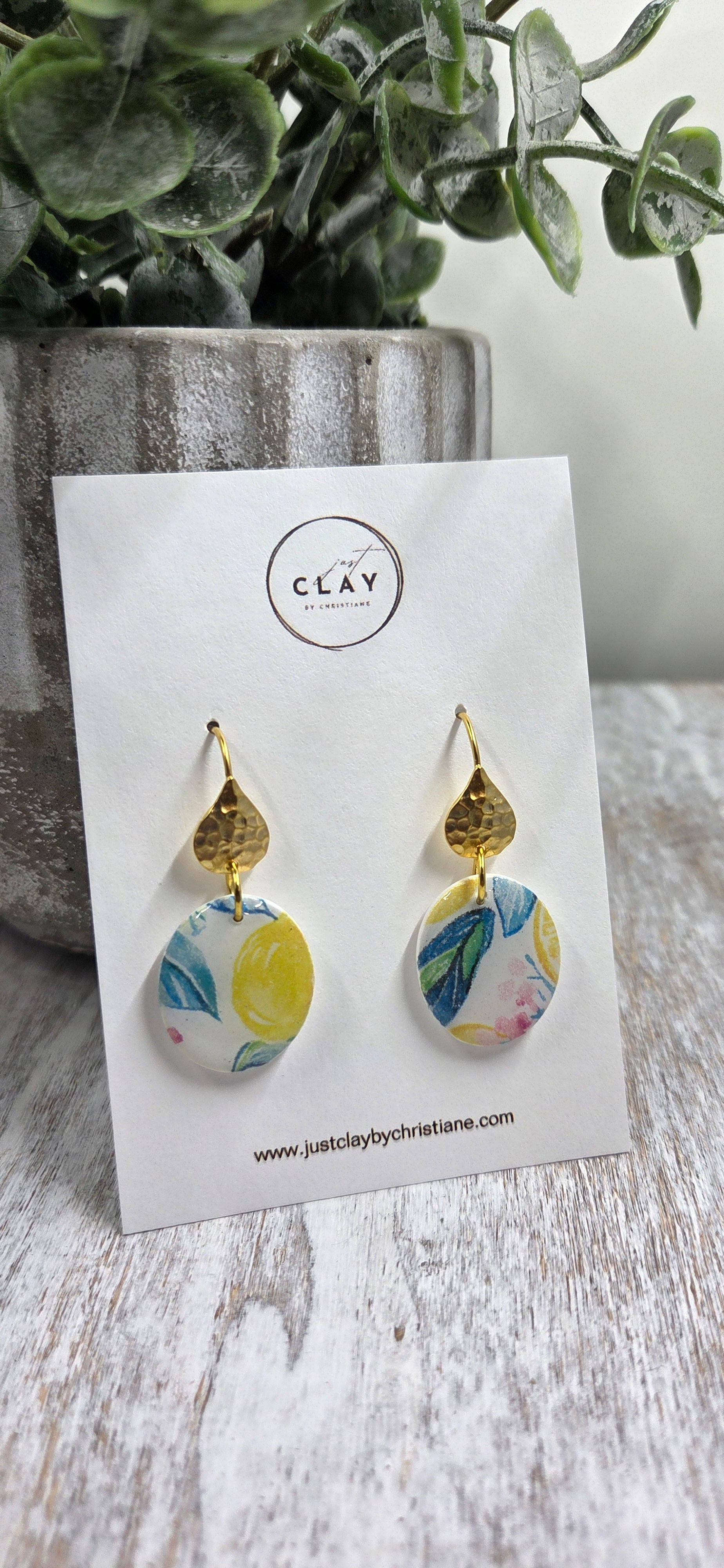 Each set of my earrings is meticulously crafted by hand, utilizing Sculpey Premo or Souffle clay along with either gold or silver-plated earring findings. The stud backings are made of stainless steel and are very good for sensitive ears. The components undergo a baking process in the oven, lasting between 30 minutes to an hour, resulting in a sturdy yet flexible final product. Following this, I meticulously sand and clean each piece, adding a layer of resin to the back of the stud earrings for added security.