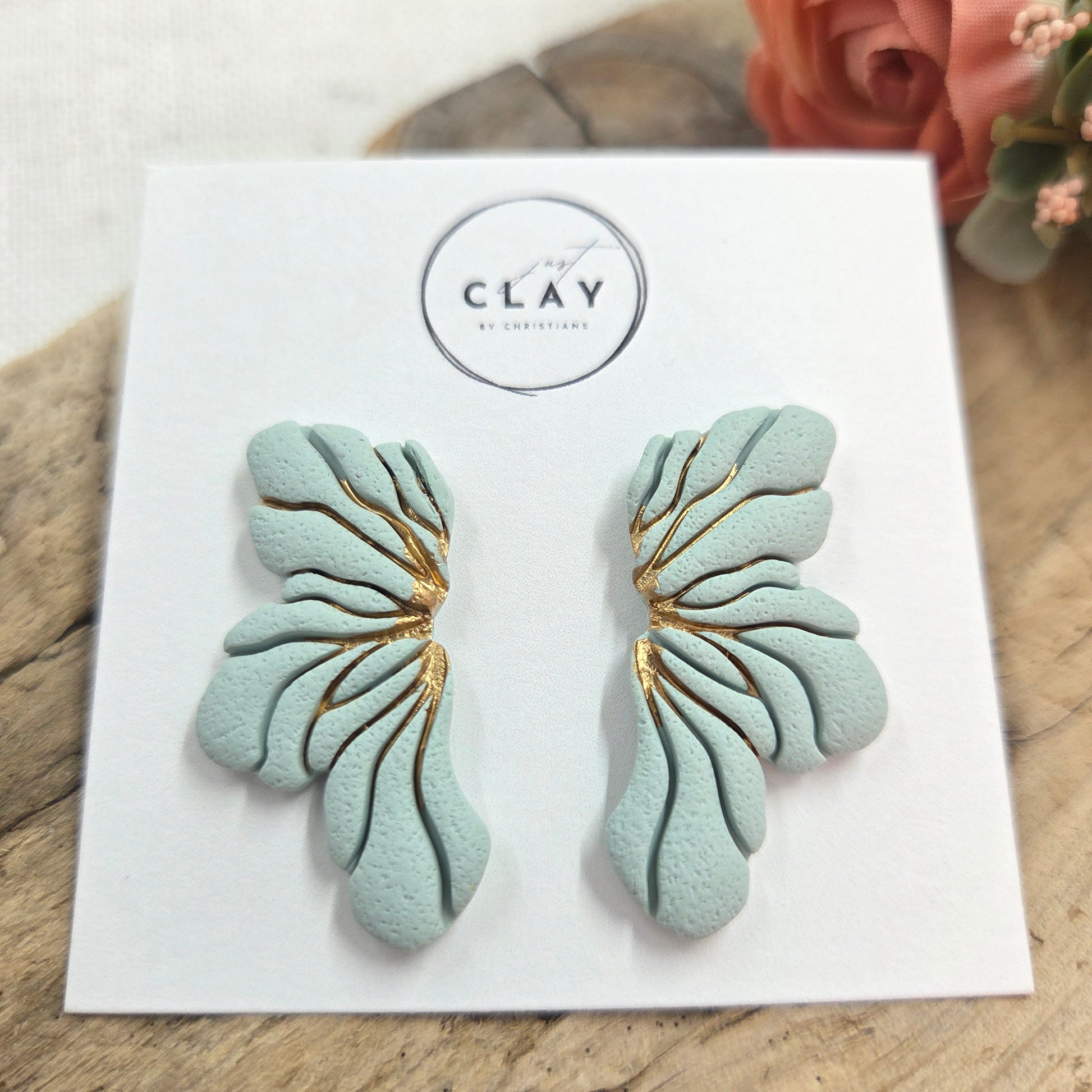 Every pair of my earrings is handmade. I use Sculpey Premo or Souffle clay and either gold or silver-plated earring findings and studs. The pieces are baked in the oven between 30 min and 1 hrs. They are very sturdy but bendable after this process. I then will sand them, clean them, and will add a layer of liquid polymer clay to the back of the stud earrings to secure the posts.